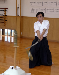袈裟斬りまで進んだ者が、道場の刀で試し斬り会を致しました
